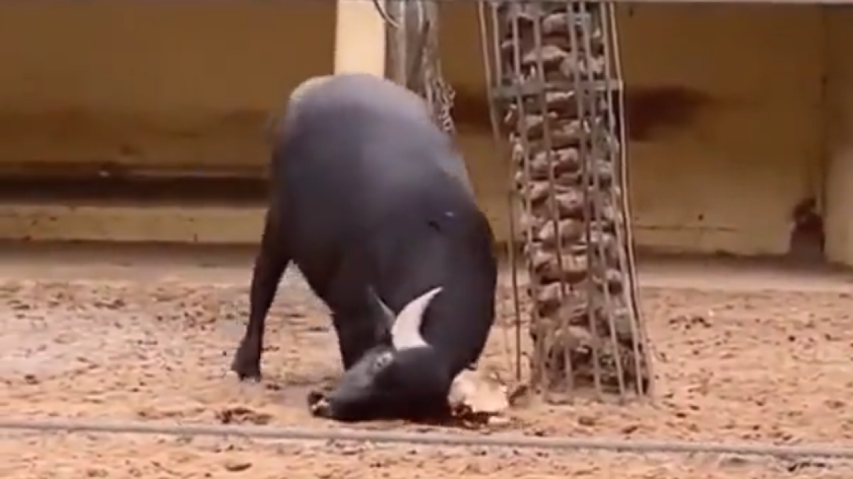 Es crea expectació entre un grup de joves en veure en directe com un búfal ajuda a una tortuga en un zoo. El vídeo mostra com l'animal bòvid fa capgirar amb la seva corna la tortuga que havia quedat a l'inrevés, posició que impossibilita el seu moviment. Després d'uns intants, en aconseguir-ho, els visitants aplaudeixen exaltats.