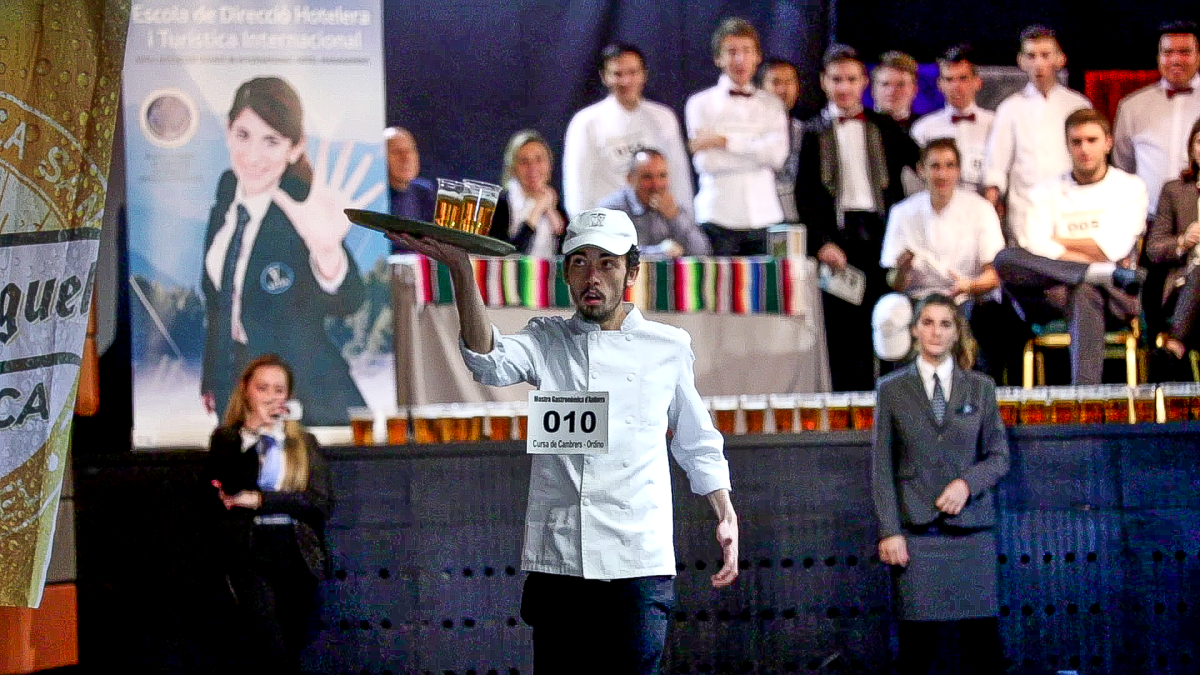 La 3a Cursa de cambrers aplega 60 participants, professionals i alumnes del Lycée, en una prova d'obstacles que ha guanyat José Juan Constantino