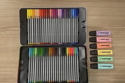 Bolígrafs de colors i retoladors fluorescents per fer esquemes i resums de feina. M’ajuden a tenir les idees molt clares i que sigui estèticament bonic em dona pau.