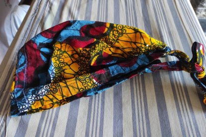 El gorro de cirurgia fet amb tela africana per la meva amiga Elisa. La cirurgia ha estat una part molt important de la meva vida, de fet, els ramaders andorrans diuen que la cara se m’il·lumina si puc fer anar el bisturí.