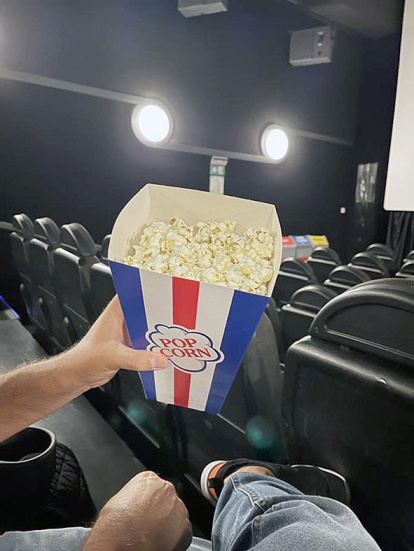 7.El cinema. En soc molt aficionat, especialment al gènere del terror. Tinc la sort de compartir gustos amb la dona. Mai faltem a la sessió setmanal.