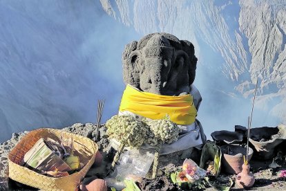 Les ofrenes El Bromo és un lloc sagrat per a la tribu tengger, de tradició hinduista. I cada any, al juny, el seu cràter és l’indret on es llencen múltiples ofrenes als deus, també animals vius.