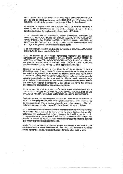 La resta de l’informe és una petita ressenya de com es va crear BPA, de tot el procés de compra de Banco Madrid, de les gestores Nordinvest i la societat de valors Interdin. És ressenyable que l’informe de Villarejo recull elements més relacionats amb els Pujol (de credibilitat escassa amb tendència cap a nul·la pel que s’ha vist posteriorment) però que van ser reproduïts el 2014 per mitjans de comunicació espanyols. D’una banda, la nota indica que “el sorprenent, en una informació pendent de confirmar, és que darrere d’aquesta gran expansió a Espanya [del grup BPA] estaria una molt important injecció de capital de la pròpia família Pujol”.