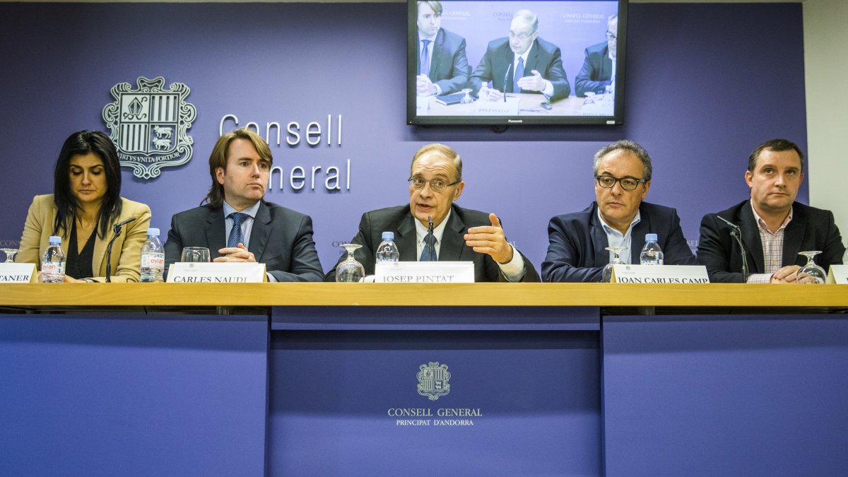 Els consellers que han abandonat el grup liberal durant la roda de premsa que van fer ahir per explicar-se.