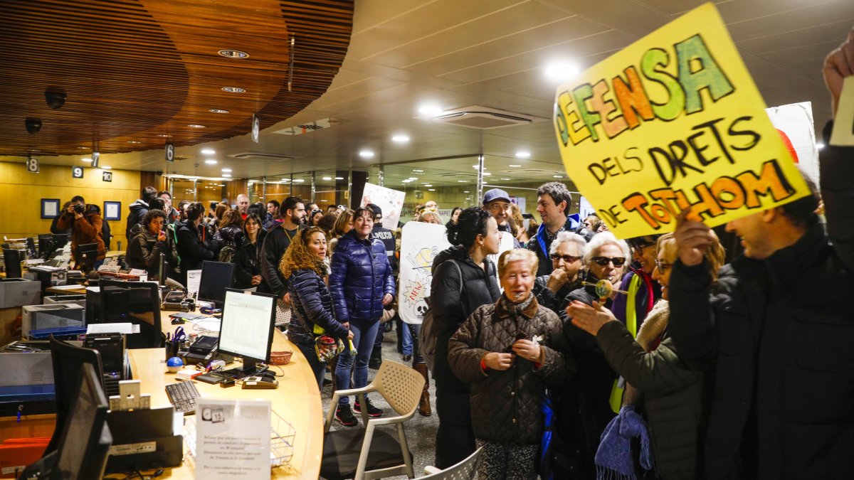 Els empleats públics s'han concentrat davant de Govern, han entrat a les dependències de Tràmits i han reclamat la dimissió del Govern