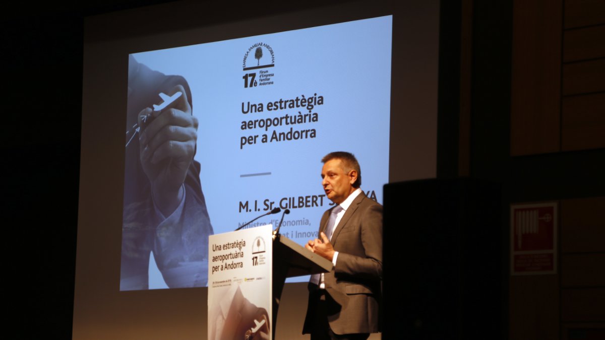 “Andorra necessita una estratègia aeroportuària per poder ser un centre de serveis d’interès per al nostre entorn.” El ministre d’Economia, Competitivitat i Innovació, Gilbert Saboya, es va mostrar així de contundent durant el 17è Fòrum de l’Empresa Familiar Andorrana (EFA) que aborda, precisament, l’estratègia aeroportuària per al Principat. En aquest sentit, per a Saboya el futur de les connexions aèries del país amb l’exterior passa necessàriament per l’aeroport d’Andorra-la Seu. Davant la possibilitat de projectar un aeroport dins les fronteres andorranes, el titular d’Economia va apuntar que la infraestructura urgellenca es tracta d’una opció “realista” i va recordar que “la prioritat de Govern és la posada en marxa de les línies regulars”. “Ens hem de basar en allò que venim treballant des de fa dos anys i en què hem aconseguit un molt bon clima amb totes les parts implicades”, va afegir.