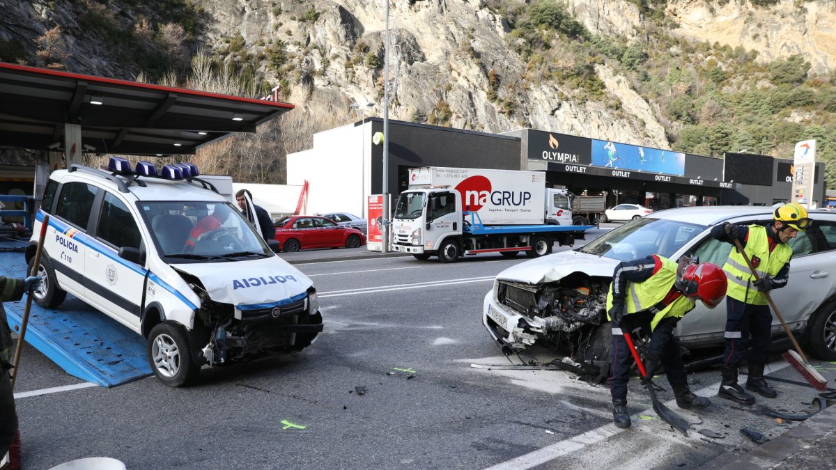 La jornada d’ahir es va tancar amb un total de nou persones amb ferides de diversa consideració en diferents accidents de trànsit al país. Del dimarts negre a les carreteres andorranes, però, l’incident més rellevant es va produir pels volts de les 9.30 hores al quilòmetre 5,27 de la CG-1, situat entre les rotondes de la Margineda i d’Aixovall. Segons va informar la policia, una dona resident de 57 anys que conduïa un Volkswagen Passat amb matrícula del Principat va perdre el control del vehicle mentre circulava en direcció Sant Julià de Lòria. Llavors, la dona va envair el carril contrari i va topar frontalment contra un Volvo XC60 amb matrícula espanyola, conduït per un home no resident de 48 anys. A conseqüència d’aquest xoc, el vehicle espanyol va fer un gir de 180 graus sobre si mateix i va impactar contra un cotxe de la policia andorrana, que també circulava en direcció pujada, pilotat per un agent de 59 anys.