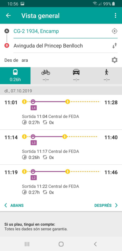 FEDA ha posat en marxa les proves de mou_t_b, una aplicació on és possible consultar el recorregut més adequat per desplaçar-se d'un punt a un altre dins d'Andorra fent servir les línies de transport públic nacionals. El servei informa de l'horari previst d'arribada de l'autobús i el temps que es triga a fer el trajecte ha assenyalat la companya.Un total de trenta voluntaris, usuaris habituals del transport públic, seran els encarregats de testejar el funcionament i les opcions d'aquesta aplicació mòvil des d'avui.