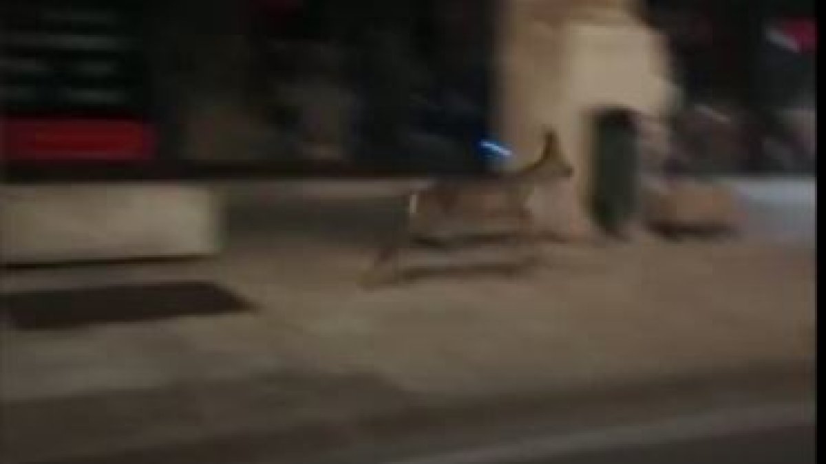 Un vídeo mostra com l'animal va en solitari per la vorera i travessa la carretera