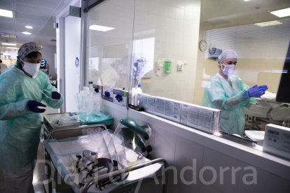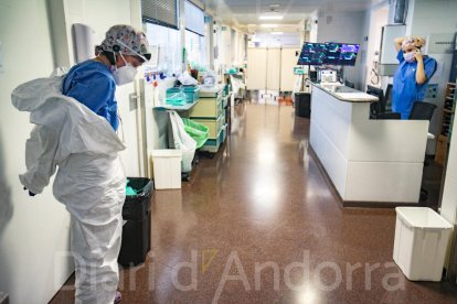 Els dos responsables de la planta Covid testimonien que Andorra mai va tenir problemes d’abastiment de material sanitari com sí que va passar en altres països. “Veterinaris, hotelers i dentistes ens van cedir molt de material i mai vam tenir la sensació d’estar desprotegits”, afirma Sarroca, tot i reconèixer que a l’inici “anàvem al dia, no podíem fer previsió de res, però tot i així mai ens va faltar material”. “La por era no tenir prou espai per als malalts, perquè l’UCI estava plena i no sabíem què passaria”, recorda angoixada.