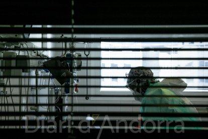 Entre els passadissos de la planta habilitada per als pacients amb Covid i els de l'UCI és inevitable percebre el cansament dels professionals sanitaris que fa dos anys que lluiten sense parar contra el virus. Mentre al carrer la percepció de la virulència de la pandèmia va variant especialment en funció de les restriccions de cada moment, dins de l'hospital la sensació és de veure una pel·lícula repetida. “Fa dos anys que vivim el dia de la marmota”, en paraules de Martos. Contràriament al que podria semblar, els professionals sanitaris guarden un bon record de la primera onada. “No la recordo malament perquè vam fer molt d'equip, tothom estava molt motivat i implicat. Vam estar dos mesos treballant dia sí, dia no, amb torns de 12 hores. Tothom ho va donar tot”, explica la doctora Odile Sarroca, cap de servei d'Especialitats de Medicina i un dels puntals forts durant la pandèmia mentre ens acompanya, juntament amb l'infermer referent de la planta, José Ortega, a la zona habilitada per atendre els pacients positius. L'espai s'ha anat adaptant a les necessitats canviants de la pandèmia, com també ho han fet els protocols. Amb una mascareta FFP2 i el gel hidroalcohòlic a les mans, travessem el paravent que separa la part dedicada a Covid de les altres malalties. Dos anys després, la situació ha canviat. “Ara tothom està molt cansat, està sent molt llarg”, confessa Ortega.