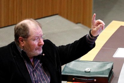 El ministre Jordi Gallardo responent al Consell les preguntes de Pere López sobre l'heliport