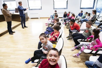 Els alumnes de primer cicle de l’Escola andorrana (Santa Coloma) van visitar el comú de la capital i van aprofitar per fer-li algunes preguntes al cònsol menor Marc Pons. ComúAndorra la Vella.