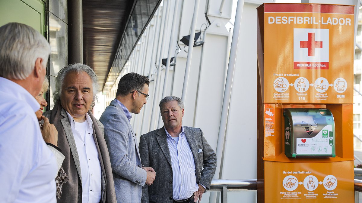 L’International Club, una entitat que agrupa mig miler de persones de diferents nacionalitats però residents al país, ha estat qui ha finançat el desfibril·lador, tot i que les despeses de manteniment i la cessió de l’espai on s’ubica, a la plaça de la Rotonda, van a càrrec del comú. El cònsol menor afirmava sentir-se “molt orgullós de tenir un aparell d’aquestes característiques ubicat en un punt neuràlgic de la ciutat i en unes dates en les quals preveiem que el turisme es dispari”.