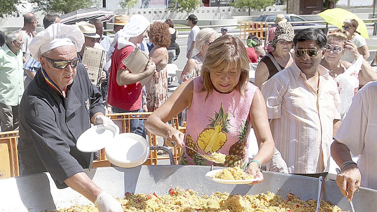 L’arrossada popular de Santa Coloma va reunir més de dues-centes persones, afamades i suades a l’aparcament d’Enclar. La cua per agafar un plat que el cuiner Abundi Monterde havia preparat, arribava fins al carrer, i molts estaven indecisos entre si tenien més gana o més calor. Marsol, a qui van servir de les primeres racions, va suplicar que “es necessita una carpa i em comprometo a posar-la de cara a l’any que ve”, reia la cònsol. La calor era asfixiant i molta gent –gats vells– ja venia preparada: portaven paraigua per protegir-se del sol o alguns, més rústics, optaven per una samarreta al cap.