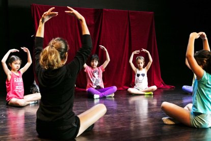 Setmana temàtica. La ballarina Pauline da Costa prepara les participants per a l’espectacle Un viatge pel món, un taller dedicat a les danses tribals africanes, balls orientals i coreografies contemporànies. Comú la Massana. Eduard Comellas.