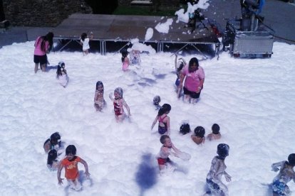 Festa d'escuma. Infants i pares s’ho van passar d’allò més bé ballant en una gran festa d’escuma amb discomòbil. La música popular va acollir la trobada, que va tenir lloc a la plaça de l’Església.Comú Encamp. El Pas de la Casa.