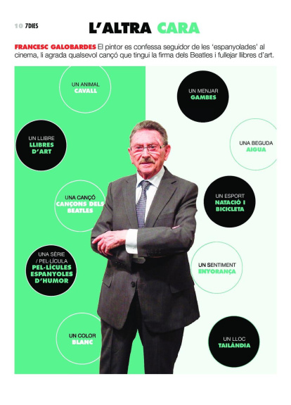 El pintor es confessa seguidor de les ‘espanyolades’ al cinema, li agrada qualsevol cançó que tingui la firma dels Beatles i fullejar llibres d’art