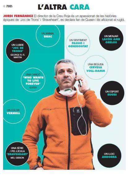 El director de la Creu Roja és un apassionat de les històries èpiques de ‘Joc de Trons’ i ‘Braveheart’, es declara fan de Queen i és aficionat al rugbi.