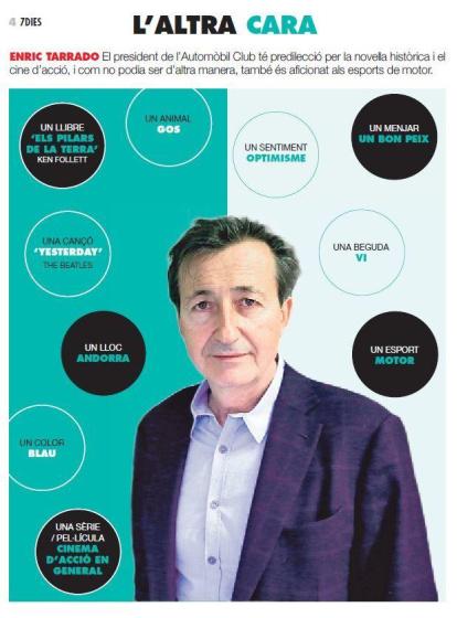 El president de l’Automòbil Club té predilecció per la novel·la històrica i el cine d’acció, i com no podia ser d’altra manera, també és aficionat als esports de motor.