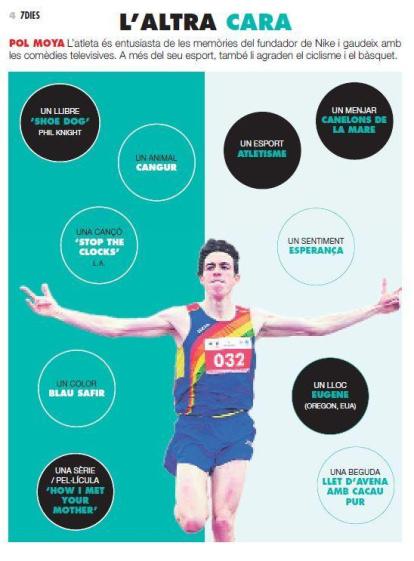 L’atleta és entusiasta de les memòries del fundador de Nike i gaudeix amb les comèdies televisives. A més del seu esport, també li agraden el ciclisme i el bàsquet.
