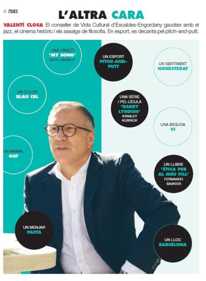 El conseller de Vida Cultural d’Escaldes-Engordany gaudeix amb el jazz, el cinema històric i els assaigs de filosofia. En esport, es decanta pel pitch-and-putt.