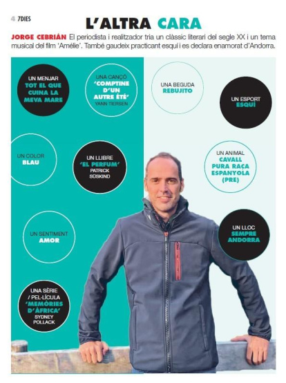 El periodista i realitzador tria un clàssic literari del segle XX i un tema musical del film ‘Amélie’. També gaudeix practicant esquí i es declara enamorat d’Andorra.