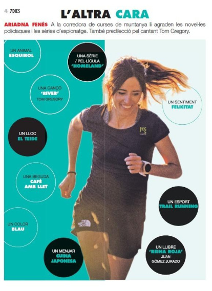 A la corredora de curses de muntanya li agraden les novel·les policíaques i les sèries d’espionatge. També predilecció pel cantant Tom Gregory.