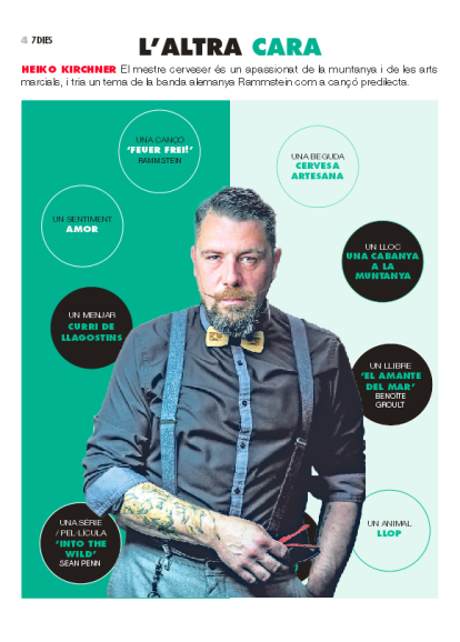 El mestre cerveser és un apassionat de la muntanya i de les arts marcials, i tria un tema de la banda alemanya Rammstein com a cançó predilecta.
