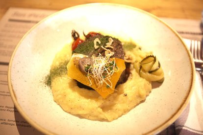 És una recepta completa i carregada de sabor, ideal per a aquells dies que ve de gust menjar un plat sa i elaborat. L’ingredient principal de l’ossobuco amb cremós de patata, escalunyes crocants i mantega de caracú és la carn de vedella, que a la Trattoria San Pietro, situada al Tarter, s’elabora sense os. “És una forma de fer el plat de manera més elaborada i amb una estètica més bonica per al comensal”, expliquen des de l’establiment. Tot i així, també es pot servir amb os si el client ho demana.