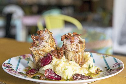 “La innovació” és una de les màximes d’aquest racó culinari, diu Tolisano. És per això que Món Bohemi elabora un menú setmanal que canvia cada quinzena perquè l’oferta sigui variada: un filet de vedella amb crosta de pebre o xurros de patates i romesco són algunes de les darreres propostes que es troben a la carta per delectar-se. La proposta és filet de porc amb chimichurri i xips de remolatxa. “Un plat especial”, ja que el fenoll es presenta com l’ingredient estrella del puré conferint-li a la totalitat del plat “un sabor particular”, assegura. L’entrant, que forma part del menú setmanal, pot elaborar-se a casa de manera senzilla.