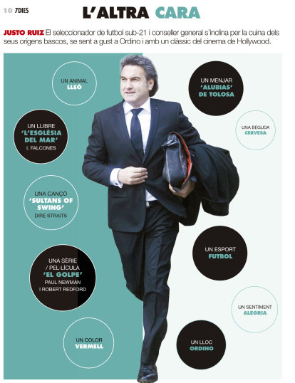 Justo Ruiz. El seleccionador de futbol sub-21 i conseller general s'inclina per la cuina dels seus orígens bascos, se sent a gust a Ordino i amb un clàssic del cinema de Hollywood