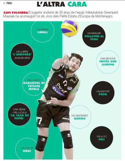 El jugador andorrà de 30 anys de l’equip Volleybalclub Greenyard Maaseik ha aconseguit l’or als Jocs dels Petits Estats d’Europa de Montenegro