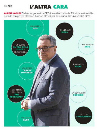 El director general de FEDA escull un racó del Principat emblemàtic per a la companyia elèctrica, l’esport blanc i per fer un àpat tria una senzilla pizza.