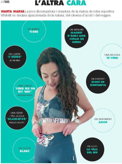 La jove dissenyadora i creadora de la marca de roba esportiva Whitefit es declara apassionada de la natura, del cinema d’acció i del reggae.