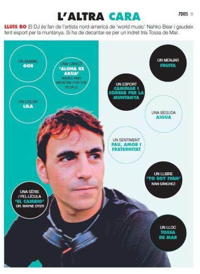 El DJ és fan de l’artista nord-americà de ‘world music’ Nahko Bear i gaudeix fent esport per la muntanya. Si ha de decantar-se per un indret tria Tossa de Mar.