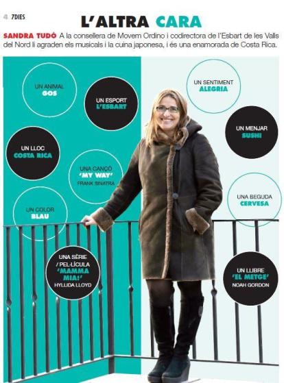 A la consellera de Movem Ordino i codirectora de l’Esbart de les Valls del Nord li agraden els musicals i la cuina japonesa, i és una enamorada de Costa Rica
