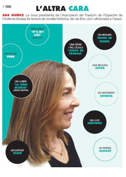 La nova presidenta de l’Associació del Trastorn de l’Espectre de l’Autisme (Autea) és lectora de novel·la històrica, fan de Bon Jovi i aficionada a l’esquí.