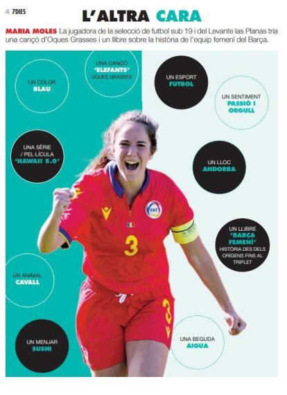 La jugadora de la selecció de futbol sub 19 i del Levante las Planas tria una cançó d’Oques Grasses i un llibre sobre la història de l’equip femení del Barça.